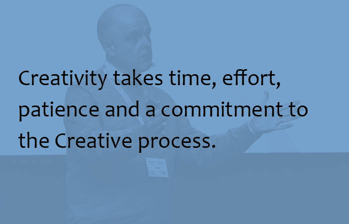 Andrew explained that decades of research has started to reveal the patterns for Creativity and how creative people succeed. Creative people are open-minded information mavens. They consume of all types and forms of inspirational content. This could be from reading books and magazines, watching films and TV, visiting art galleries and museums, attending conferences and walking around exhibition halls. Consumption fuels the creative process.