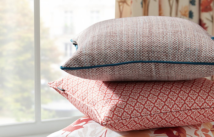 Complementary to this is their Grasmere print, available in six colourways, which has been elegantly simplified to coordinate alongside Fleur. With a single coloured background and an overlaying silhouette motif, this design is a smaller-scaled floral pattern, allowing for an effortless coordinate.