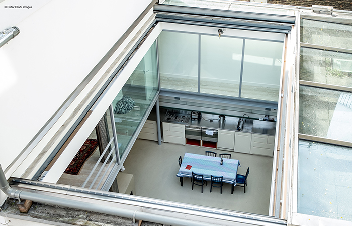 Situated right in the heart of Clerkenwell, Paxton Locher House was built in the mid-1990s and is a popular destination during ‘Open House London’. The ingenious architecture of this house embodies KI’s ethos of finding innovative solutions to unique design challenges for its clients. Secluded behind buildings facing the Green, this split-level home presented a design challenge – enclosed by its neighbours, the site had no opportunity for windows.