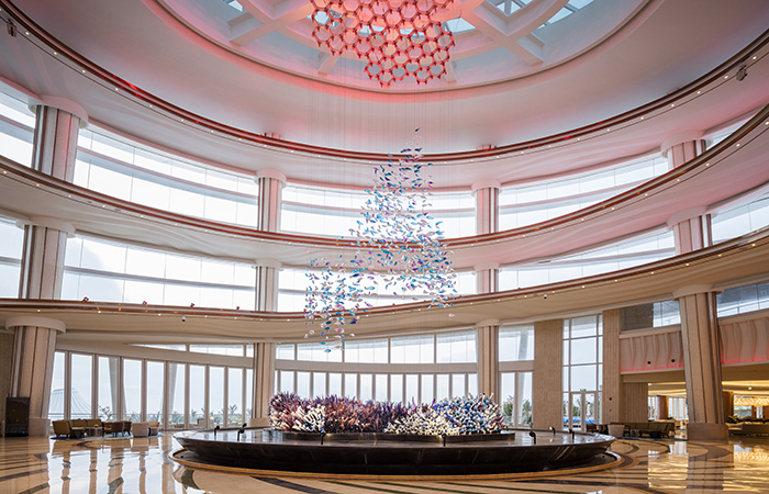 Overlooking the stunning South China Sea from Chinese Hainan Island, Atlantis Sanya is a resort that celebrates the majesty and mystery of the ocean. Far beyond luxury accommodation, this first Atlantis hotel in China is designed to provide a sense of discovery and pure entertainment, all built around the myth of the lost continent of Atlantis. With features including an extensive Aquaventure Waterpark, exotic marine exhibits, swimming with dolphins and scuba-diving programs, the hotel’s interior design theme was clear.