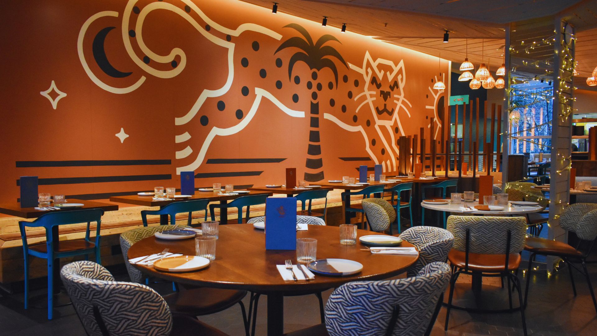 A vibrant welcome – Wahaca’s striking design blends bold, colourful aesthetics with dynamic textures, creating an inviting and energetic atmosphere.
