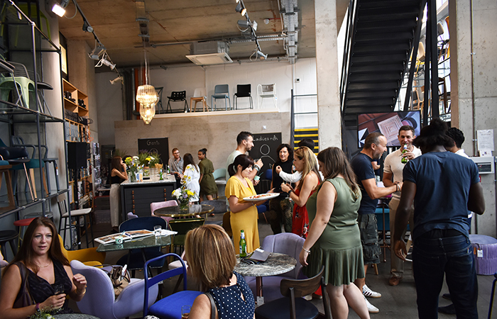 The Launch party was held at Inside Out Contracts’ South London Showroom with live music, handmade gelato, Prosecco and Italian Beers. Furniture from leading design-houses such as Magis, Gubi and Kartell featured alongside new trending designs, ranging from fringed furniture and brass metal frame chairs, to colourful terrazzo tables.
