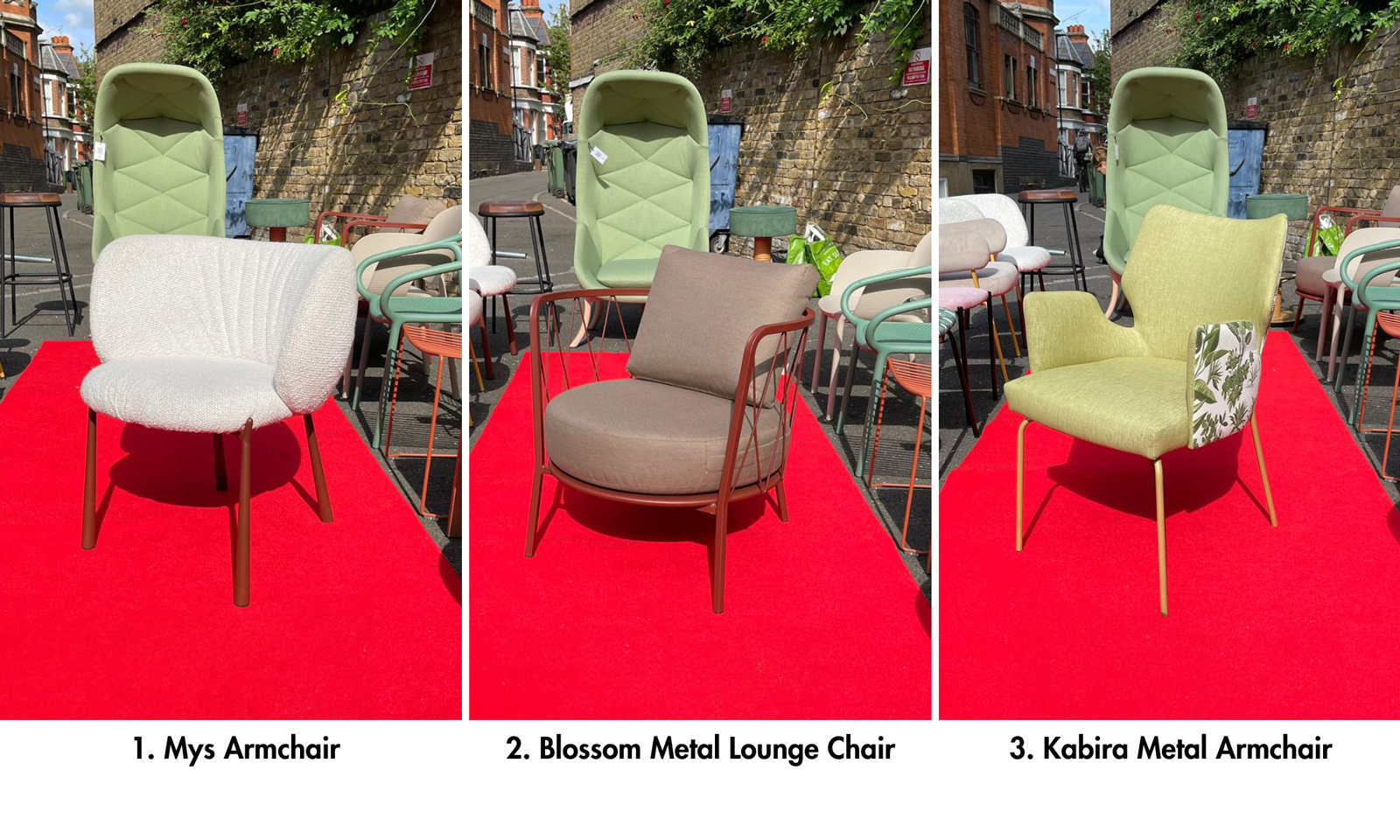 The Blossom Metal Lounge Chair is a real highlight for its blend of modern design and comfort. Its sleek metal frame and comfortable cushioned seat make it both stylish and sturdy. Milan in a Van Tour attendees have praised its versatility, noting how well it suits various hospitality settings, from hotel terraces to trendy urban bars. Shown in a warm terracotta finish, this chair is adaptable and contemporary.