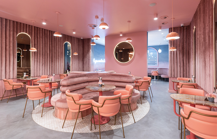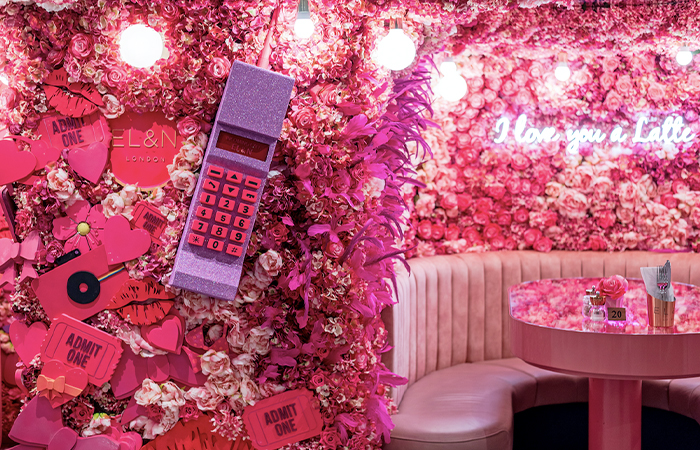 “THINK PINK” shout the Love Hearts that decorate the walls of London’s most Instagrammable patisseries. Collaborating with Holland and Harvey Architects, Inside Out have decorated the EL&N cafes in every shade of pink.