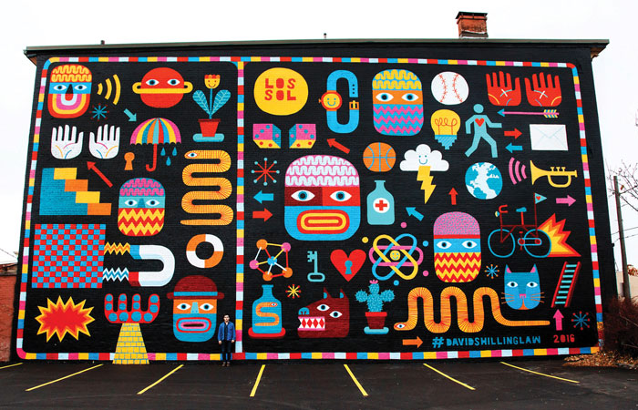For many, the appreciation of the great outdoors is more palpable than ever before, whilst simultaneously; deeper and often worrying questions surrounding our collective and individual existence are precipitating through our conscious and unconscious thoughts. Although for some, big life questions and an appreciation for the exterior world have always been present. Artist David Shillinglaw, who creates large-scale murals and works on paper and canvas, is certainly no stranger to such notions. His colourful and playful creations explore human nature, success and failure and the language that people use in the context of their experiences and are regularly created on exterior surfaces.