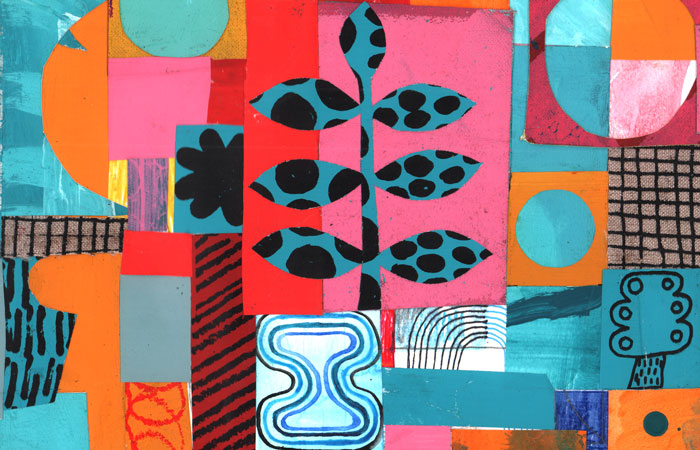 The works in this exhibition are a cross pollination of ideas and materials, mixing drawing, painting and collage into one hyperactive patchwork of information. Different mediums wrestle for space, and colours compete for attention. Amidst this chaos there is an attempt to organise space, discover some peace, draw a line under the abundance, and tend to a visual garden. The works celebrate failure and a lack of control. Often uncertain, I am comforted by the words of Carl Jung, “In all chaos there is a cosmos, in all disorder a secret order.”
