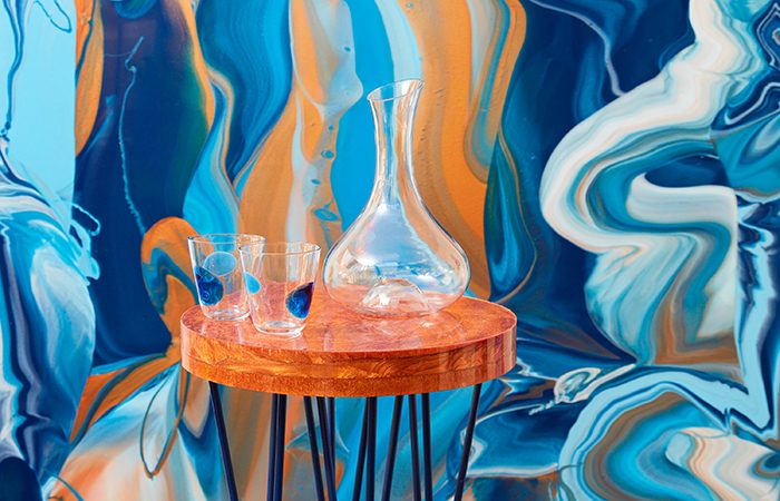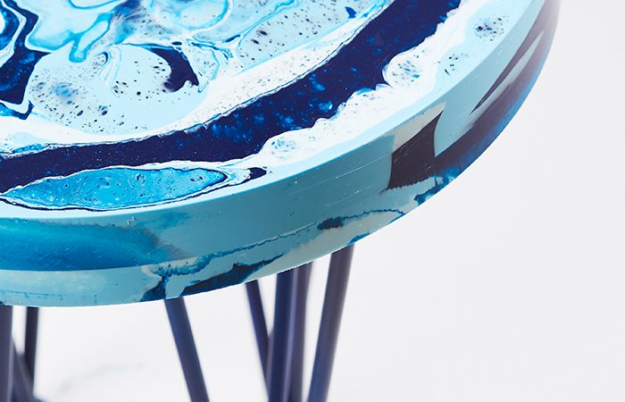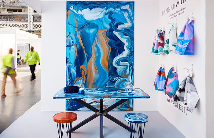 HW: MarbleSil is a handmade marbled silicone surface with which I have created a number of product applications including wall coverings, flooring, upholstery and homeware products. The process of creating MarbleSil essentially involves mixing colour with silicon but it has been developed over 5 years and is a protected process. However, I can say it’s been a very layered process of perfecting pouring techniques.