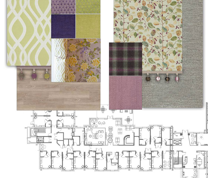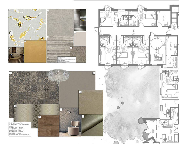 There was a lot of emphasis on making sure the results of the dementia unit was homely yet practical, allowing the space to be carefully designed. The challenge was to navigate the design requirements for dementia, such as furniture contrast with the flooring, wallpapers couldn’t include large amounts of patterns, and the sympathetic artwork, signage and colours to assist with wayfinding. With all this in mind, we needed to keep the design interesting and soothing to the resident, making sure the environment around them calms them rather than distress them. Studies show that nostalgic features within the design of their environment can trigger past memories and start a talking topic with residents, staff and visitors alike.