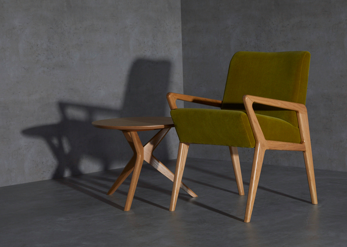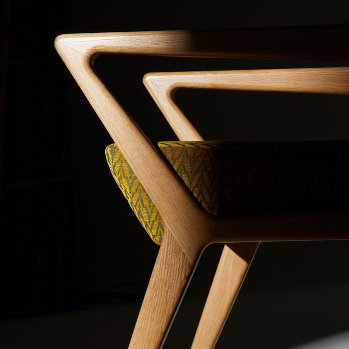 I am influenced by the mid-century period and I like designs that challenge the eye and take you on a journey of movement around the piece of furniture, whether that’s a chair or a table. I feel that good design should do that, it should evoke emotion and make you want to touch. That is what I want when people come into contact with my work, I don’t want them to be passive with how they interact with it.