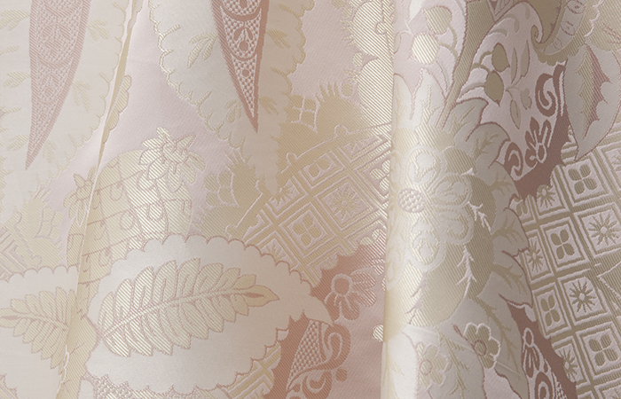 In Persienne the luxury fabric of silk is used with a background weft. The lace-style design depicted on the fabric that is typical of the 17th century. The fruit and flower motifs are organised in diamond shapes and are richly ornamented with vines and other small elements. Used for upholstery, curtains, walling and accessories, this French regency style design was inspired by the fashion of the era, which was characterised by refined drawing style and delicate coordination of pattern.