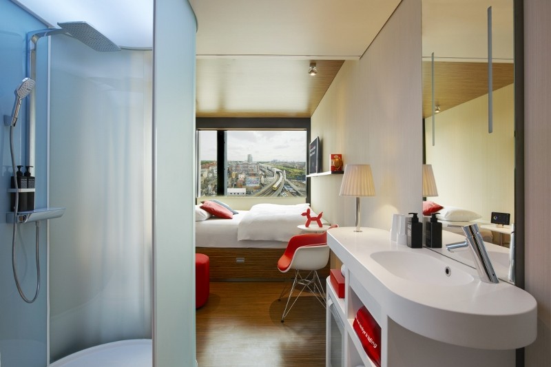 citizenM Shoreditch offers 216 rooms stacked on the first-floor lobby. The architecture of citizenM Shoreditch is the result of an Anglo/Dutch architectural collaboration between Amsterdam-based Design firm concrete and London-based Architects Ellis Miller. The collaboration resulted in a project that is strikingly urban.