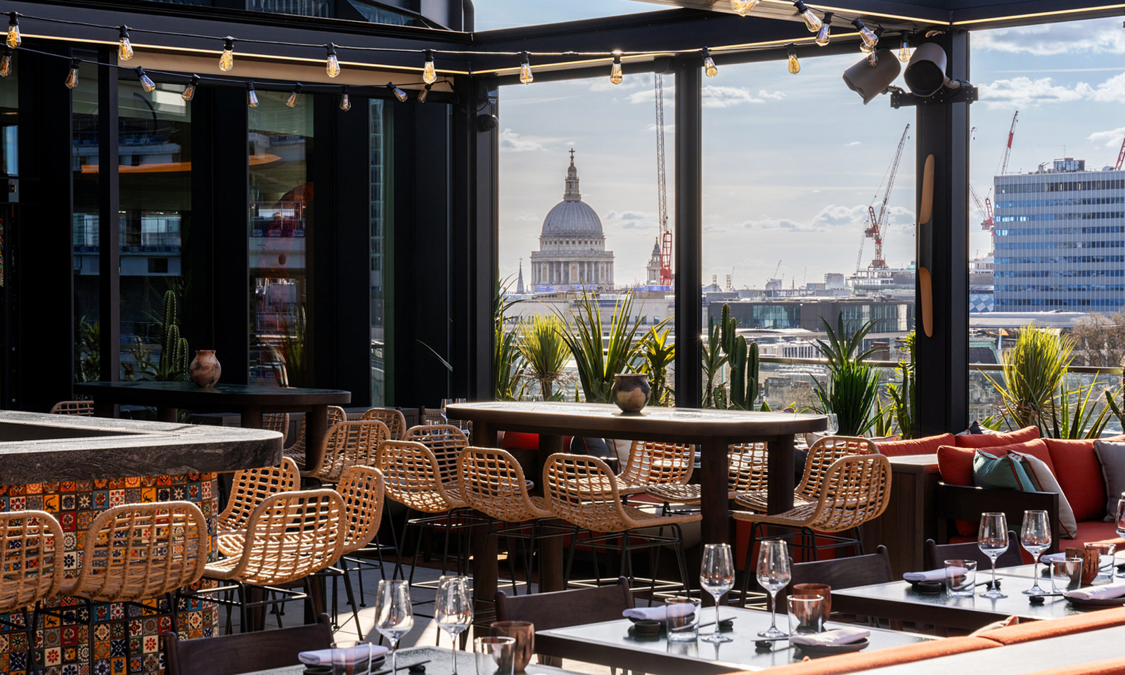 As diners continue onto the terrace, another striking bar awaits framed by hand painted Mexican Talavera tiles. Bordered by cacti and set against the backdrop of St Paul’s Cathedral and The Gherkin, the terrace will offer a fully covered and heated haven. With one of the latest outdoor terrace licences in London, diners and cocktail lovers will be able to sip sundowners al fresco until late (3am).