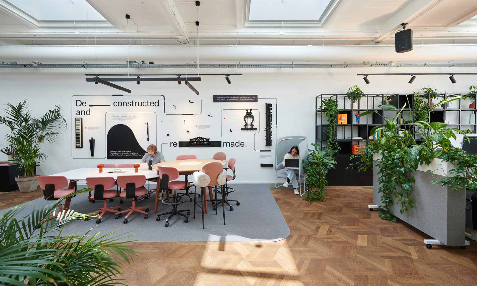 To maintain the former concert hall’s charm, the design firm minimised construction and repurposed materials. They didn’t build any dry partitions, and everything they installed is movable or can be disassembled.
