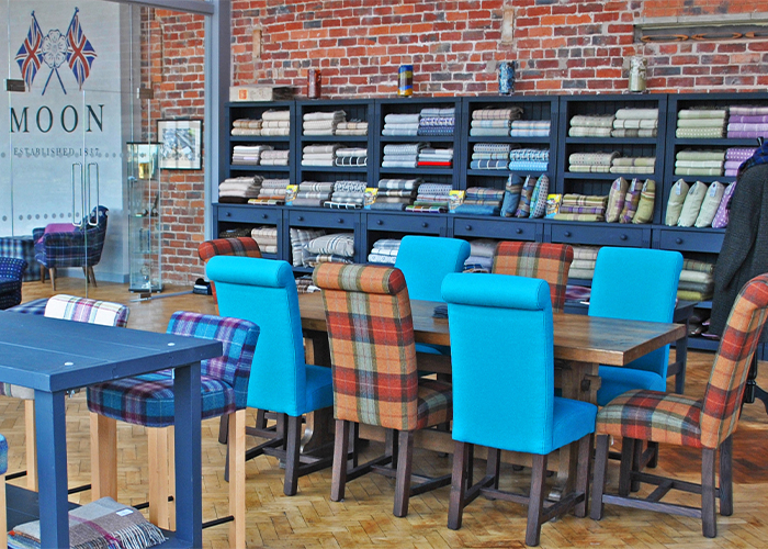 Abraham Moon & Sons are an international brand with a long-standing reputation for innovation, design, and premium quality. Our company creates authentic wool fabrics and accessories for leading fashion brands and interior designers worldwide, fusing traditional craftsmanship and methodologies with the latest technology. We are among a select few in the UK who can perform all processes at a single site, from dyeing the wool and making our own yarn to weaving and finishing the fabric, providing remarkable versatility and the ability to control each process to meet our exacting standards.
