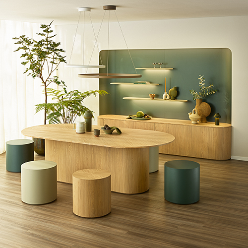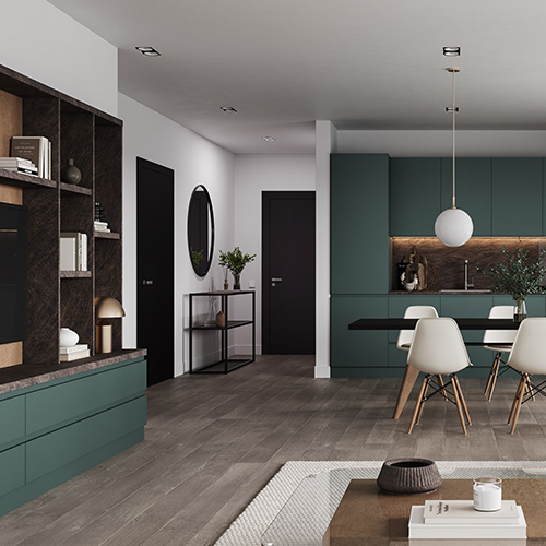 The collection includes EGGER’s award-winning PerfectSense® range of gloss and matt surfaces. Within the portfolio, PerfectSense Premium offers flawlessly smooth lacquered surfaces in mirror-like gloss or velvet-like matt, with heightened scratch resistance, and anti-fingerprint properties in matt decors. New for 2024, PerfectSense Lacquered Chipboard offers a cost effective, environmentally sustainable matt option on a 100% recyclable chipboard core, available in solid colour as well as innovative woodgrain decors. Complementing PerfectSense Laminate means there is unlimited design freedom with the range, and a material to suit every budget.