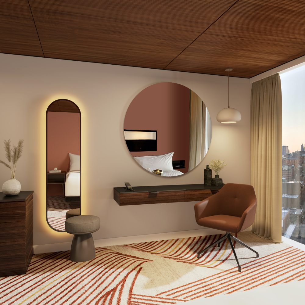 Luma Mirrors provides bespoke mirrors tailored to clients’ exact specifications, including illuminated guest bathroom mirrors, shaving mirrors, and guestroom mirrors such as vanity and full-length designs. Our collection features both frameless and framed mirrors, catering to the hospitality sector from budget to luxury. We work closely with designers, architects, procurement teams, hoteliers, project managers, and contractors to ensure our mirrors align with each project’s aesthetic and functional requirements.