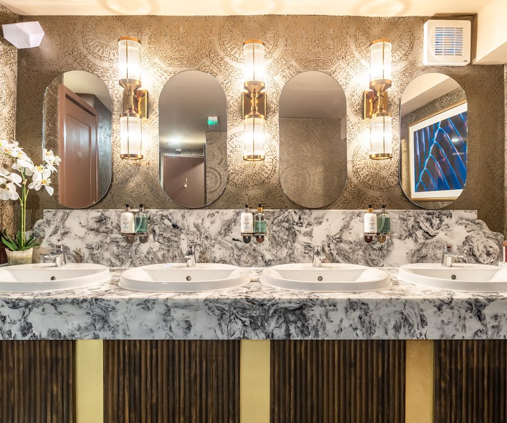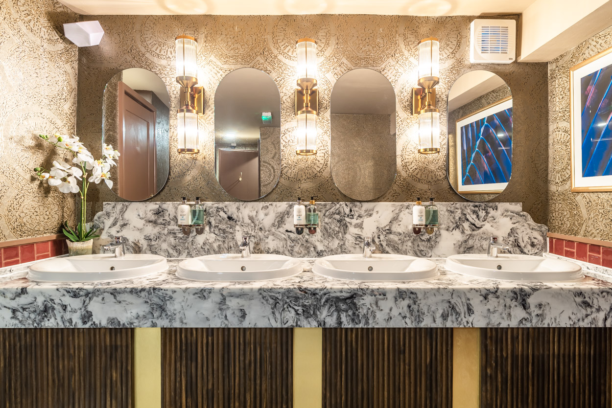 As well as marble finishes, Versital also offers a range of granites, stones and even high sparkle high impact modern finishes in the ‘Reflect’ range. Versital’s range of products for washrooms, bathrooms, bars and restaurants includes: