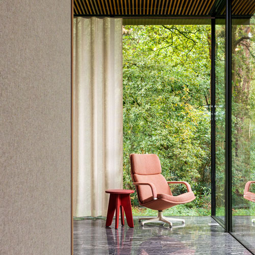 Vescom makes it possible to create a synergic sustainable interior using cross-category materials that incorporate recycled content, from vinyl wallcovering to upholstery to floor-to-ceiling curtains. Even though each product has its own identity, these sustainable solutions are a blend of material-driven DNA, high performance and sustainability. Materials with a common ground for a common good.