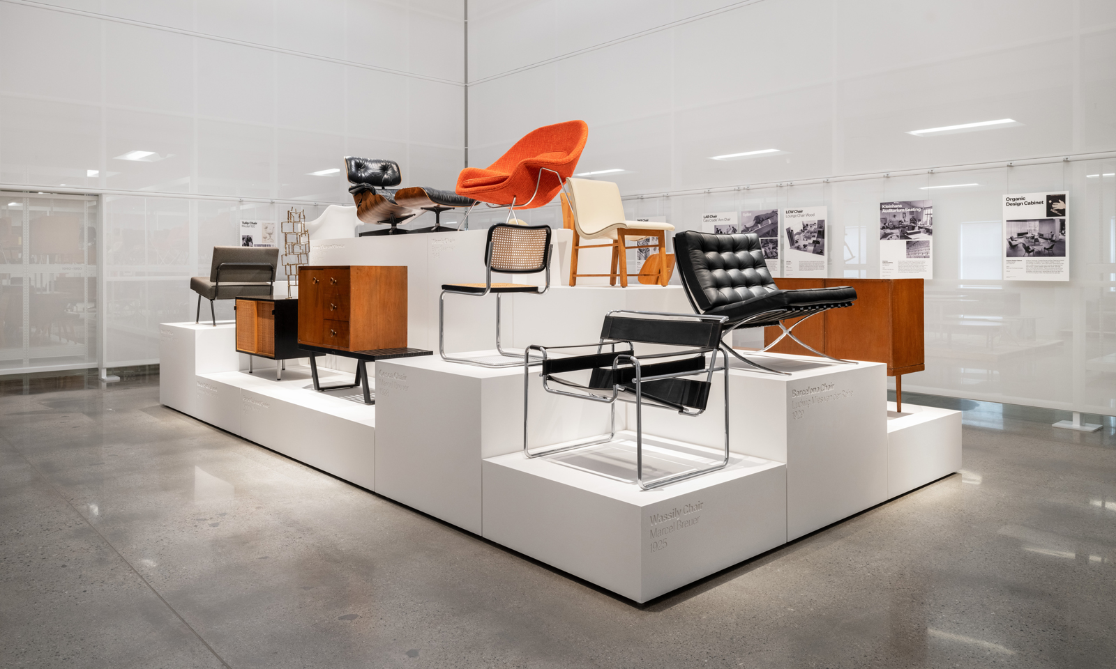The inaugural exhibition ‘Manufacturing Modern’ examines the shared histories of Knoll and Herman Miller, and features a selection of the iconic designs created by the visionaries who shaped the companies – Florence Knoll, George Nelson, Eero Saarinen, Charles and Ray Eames, Harry Bertoia, Ludwig Mies van der Rohe, Marcel Breuer. Through these objects and corresponding didactics, the exhibition communicates a history of the beginnings of Modernism, the early 20th century movement whose guiding principles drove both Herman Miller and Knoll to produce designs that would prove fundamental to the history of modern design.