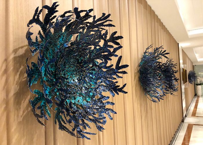 The Atlantis is a remarkable hotel in Dubai. More than a welcoming atmosphere, the hotel prides itself to offer its visitors an immersive and sensitive experience. Echoing the decoration of the palace, the artworks are imbued with the richness and atypical visual universe of Dubai’s seabed.