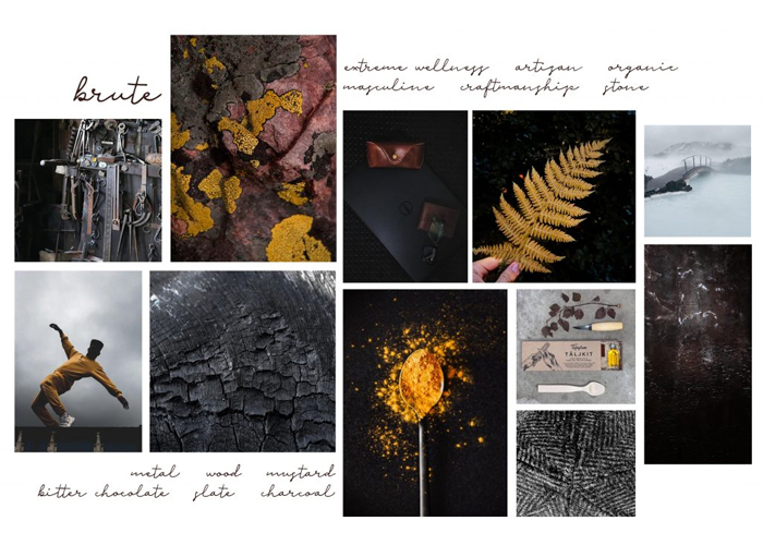 Brute is all about a new form of masculinity. Brutalist design, craftmanship and traditional skills using leather and metalwork are key to this trend.
