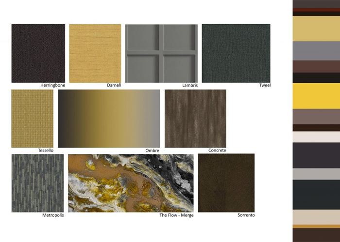 In interiors, the bright colour palette is paired with innovative materials with a focus on sustainability. Our digitally printed ranges lend themselves perfectly to this trend, we can re-colour any of our Newmor Custom or Designer ranges and print onto any of our base materials.