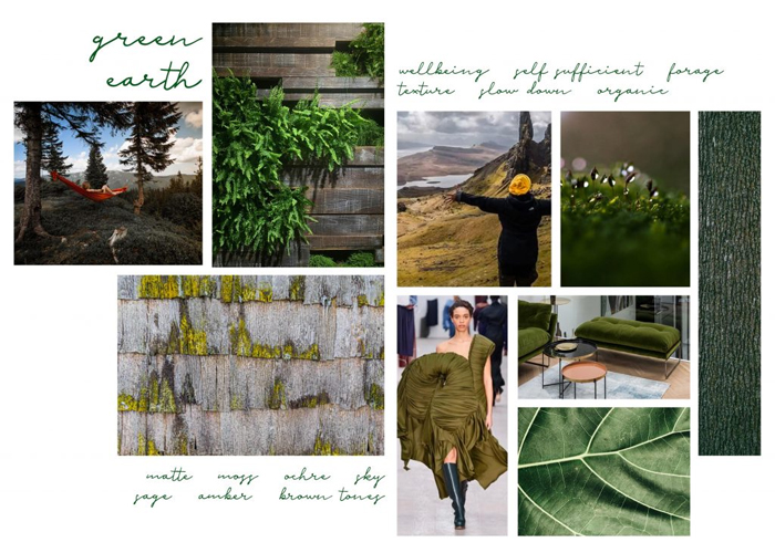 The colour green is of particular importance, as science has shown that looking at green can decrease heart rates and alleviate stress. Growing your own vegetables and living a simpler existence is both good for the soul and good for the environment, with natural dyes also having a resurgence in popularity. Key colours for this trend are matte moss, ochre, sage, amber, brown tones and sky blue.