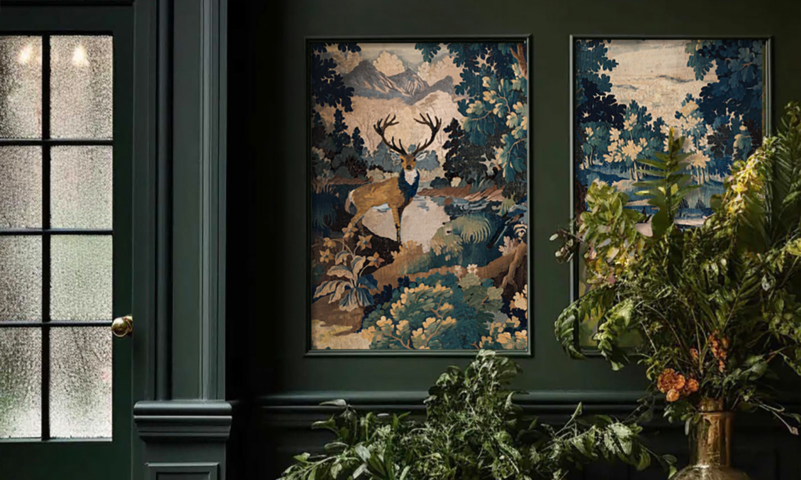Vintage Verdure – An enchanting reinterpretation of 16th-century Flemish verdure tapestries. The woollen embossed base adds real depth and a tactile quality to enhance the design.
