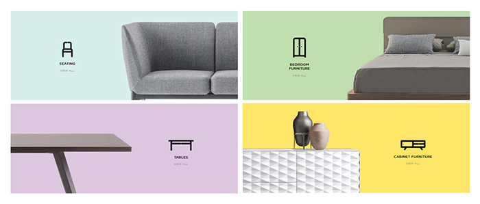 ‘All the brand elements come together on their website – a clean, well-branded online space, which showcases their full product range as well as the bespoke nature of their work. The site is built around an E-commerce backbone, to house the hundreds of available products. Large, high-quality imagery helps the website feel like a modern, spacious place. The bespoke icons and colour palette help navigate the user around the site with ease.’