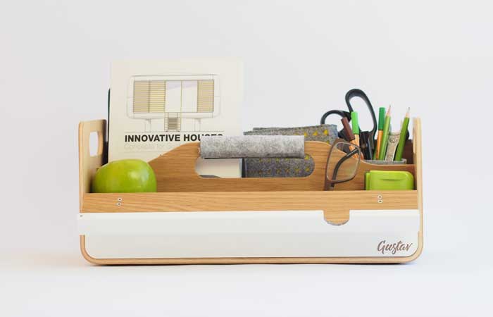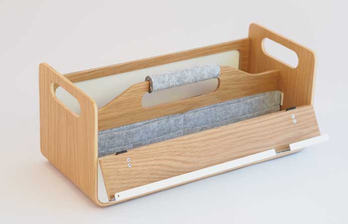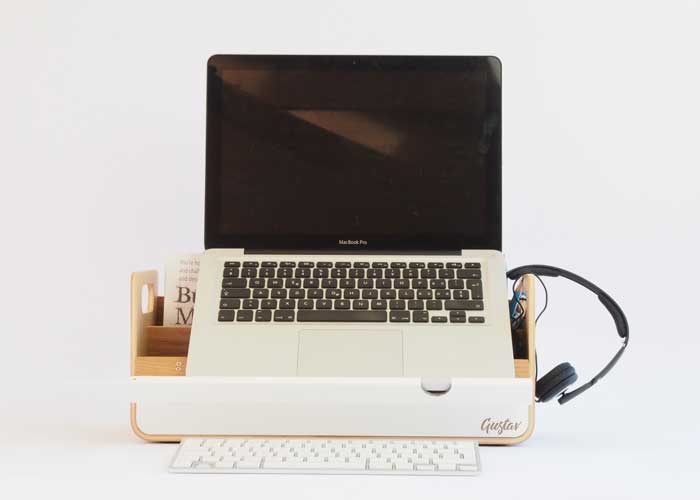 The first ergonomic and portable solution of its kind, Gustav allows users to carry their workspace with them wherever they go – whether you are working from home or in an office. Light, beautifully-designed and with capacity to hold all the work essentials anyone needs, it also doubles as a laptop stand.
