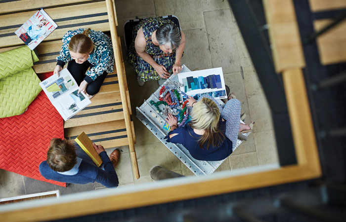 As Lynn Kingdon, Head of Creative Design at Camira, comments, “The heart of Camira’s office is the design table; located in the centre of the space, surrounded by a myriad of fabric swatches, yarn snippets and picture boards filled with inspiration, it is a place bursting with tactility, texture and visual stimulus. Built for collaboration and creation, a virtual replication is a tricky task to achieve.” And the importance of having this space is difficult to overstate, with a number of research reports revealing that employees thrive when they are provided with workplaces that facilitate both solitude and collaboration.