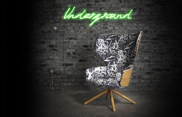 Bringing a burst of colour and contemporary aesthetic to Seller’s signature restaurant style, the latest fabric design by Simon Attard named Underground reflects his own passion for recycling and sustainability, and in both name and substance references the increasingly disposable society and waste issues that we deal with every day on our streets, underground in landfill, and in our oceans.