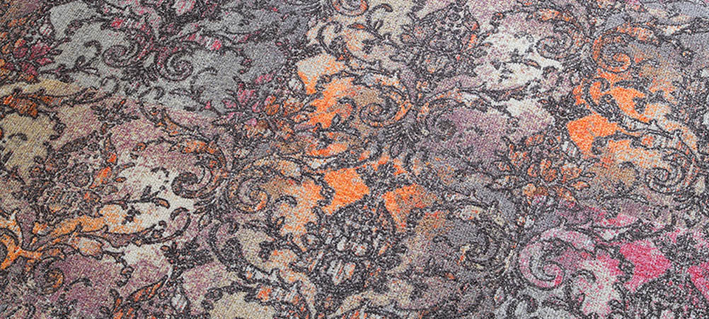 Artistic Liberties is a daring new collection from the Milliken in-house design team. It combines post-punk and street art influences with historic and classical references resulting in a liberation of clashing colours and twisted timelines. Artistic Liberties makes a traditional design contemporary and outspoken. The disparate sources of inspiration include ornate patterned jewels, elegant damask and brocade fabrics and the illicit marks made by a street artist’s spray can. The accidental and chaotic is married with the controlled and refined. While juxtaposition might be the starting point, the final collection successfully harmonises these seemingly discordant influences together.