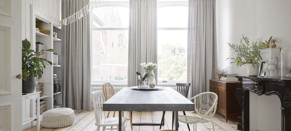 The fabric is more than 300cm high with the pattern printed or woven horizontally across, making matching patterns and sewing seams a thing of the past. The sophisticated, luxurious easy-to-care-for, washable fabrics come in a palette of neutral pastels and rich deep tones.