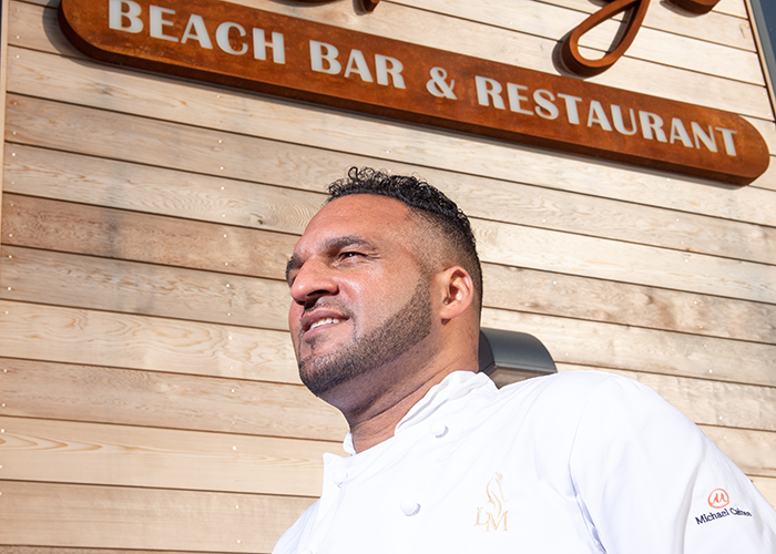 I was introduced to the plans to create a large watersport venue and restaurant on Exmouth seafront around 5 years ago, which is when I first got involved in the project and started on the design concept. Building works on Mickeys Beach started late 2019 and throughout last year but were unfortunately delayed due to Covid. We opened the cafe/patisserie first and then the restaurant followed on 17th May when indoor restrictions lifted. It’s going great so far; we have been busy and are excited for what the future holds.