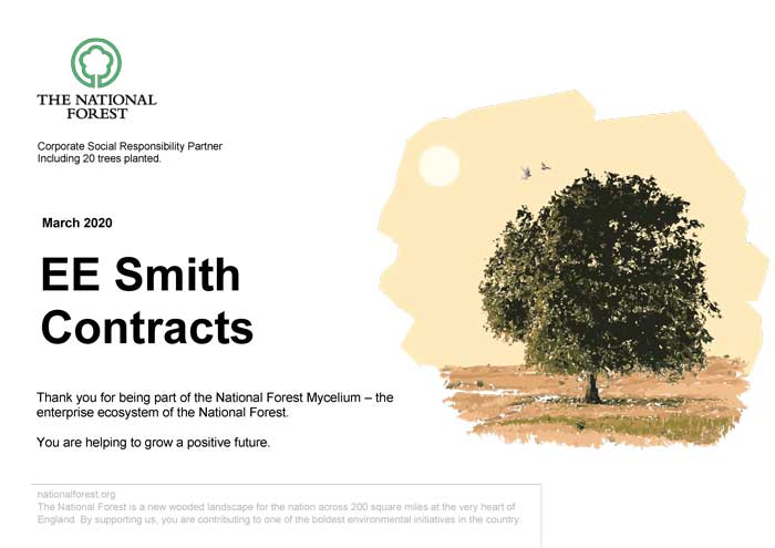 EE Smith are now Corporate Social Responsibility Partners, which supports the National Forest Mycelium – The enterprise ecosystem of the forest. As we take small steps towards growing a positive future, we start by planting 20 of our own trees in the forest, which we plan to increase over time. Some of our biggest timber suppliers are also CSR Partners, making our supply chain even more socially & environmentally responsible, something that isn’t always easy to achieve in this industry. There are many additional benefits to becoming a partner, with invites to exclusive events & regular forest updates. We look forward to growing & nurturing our partnership over the years to come.