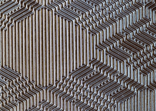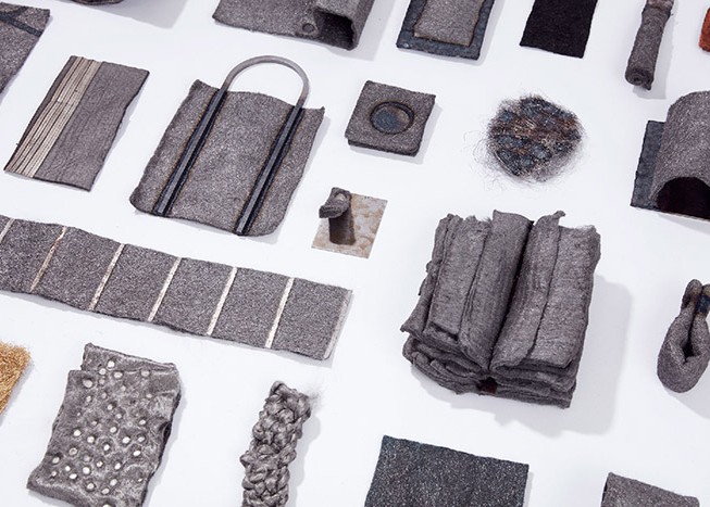 The team takes human hair and fuses it to the surface of metal sheeting through intense heat. The process alters the keratin within the hair, carbonising it and forming a durable and visually fascinating surface effect.