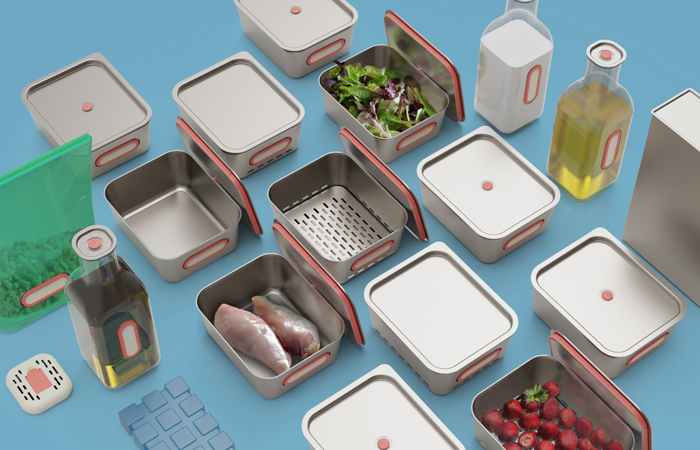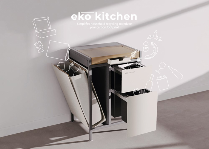 Whilst visual references hark back to nature, numerous projects seek to create ways of living that will benefit nature by reducing waste, something that was demonstrated by products designed for the future, more sustainable home. Matthew Shepherd’s EKO Kitchen is an entirely holistic example of this mind-set, with a stand-alone butchers block kitchen unit designed to de-clutter the kitchen whilst organising recycling. Packaging is the primary focus of Loughborough University graduate Samantha Tung’s project Reverse. Her clever containers do-away with the need for disposable food wrappers whilst conveniently keeping the consumer and supplier connected, as the judges explain:
