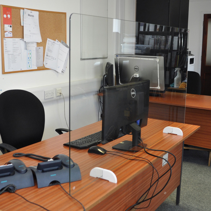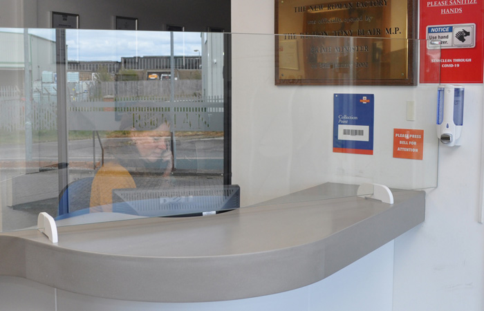 Two options exist to suit height requirements. The Desk Shield is 1470mm long and 755mm high to offer protection around a standard desk height and width. The Reception Shield is designed for a raised Reception desk and offers 1500mm length and 490mm height. Both products feature 6mm toughened safety glass to EN12150. Roman have provisioned extensive stock and these items are now in manufacture – available on a 5-10 day delivery window.