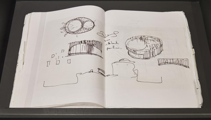 A fragment of the Sclera pavilion will be showcased in one of the exhibition rooms. The original Sclera was an elliptical 12 x 8 metre American tulipwood outdoor pavilion located near the river Thames on the Southbank Centre Square. Inspired by the human eye, it was an exploration of form and space, and was designed as a public room in the heart of the city that could be simultaneously calming and uplifting – an immersive urban monument about slowing down in order to see and understand the world better. The fragment at the Design Museum, which has been replicated following the original drawings by craftsman makers Benchmark, measures 4.5 x 3.4 metres and will invite visitors to get a glimpse at what the original experience inside the pavilion was like, and to explore the look and tactility of the tulipwood.