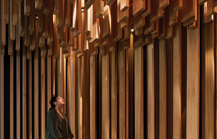 “Working with tulipwood timber allows to really bring out a series of positive and negative forms together. The architecture looks opaque and solid as you approach it, you think it’s a sealed room that dissolves as you enter. You realise that it is a moment where your heightened feeling of light and air are brought into the fore and the visual world is taken away from you,” says Sir David Adjaye. “I wanted to think about the role of sacred spaces, respite spaces, quiet monuments that played a certain role in our cities and maybe have now become more formal as religious spaces. I wanted to really find a way in which we could make a space that didn’t have the connotations of religion or formal monuments but one that could just allow citizens to retreat from the bustle of everyday life. Timber, such as tulipwood, brings a sense of calm and being amongst nature when surrounded by it.”