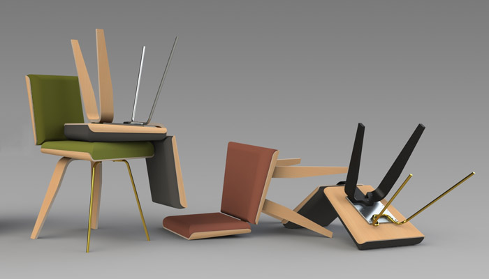 Callum Grant: This seating concept revolves around the configuration of components to produce different seating styles and applications. Using a central connecting plate the separate leg, arm and backrest components can be easily configured to fit the specific needs of the client within the contract furniture market. With several options for the leg, arm and backrest components there are 256 total standard combinations of the chair. With the additional option of fabric finish the total number of combinations would be close to infinite.