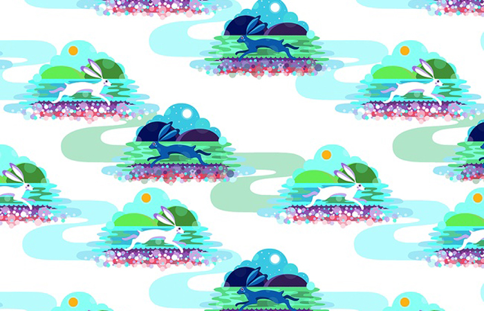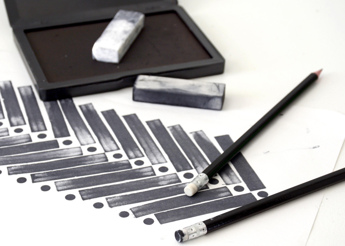 I also really enjoyed the mark making. We use various methods both digital and analogue as the starting point for our pattern designs. Including simple ink-stamping using rectangular erasers and the rubber end of a pencil. All the basic elements we created using this simple hands-on and fun process, these were then scanned and made into vector files allowing us infinite scale and colour changes.