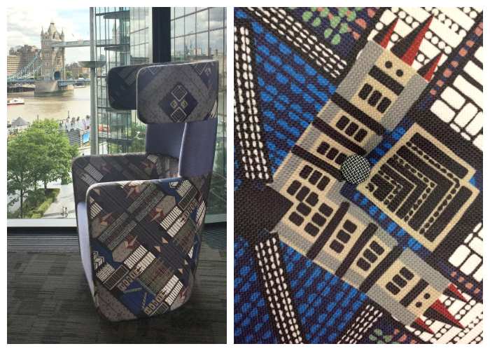 We created designs with the London team answering the brief for distinctive patterns. We created four patterns that have a recognisable London theme whilst not being too clichéd or obvious. Each of the patterns have a number of colourways and were used throughout the project. In total there was in excess of 1500 linear metres used.