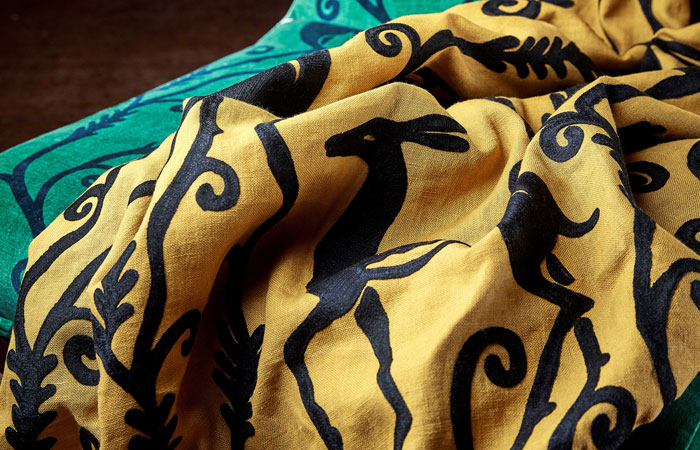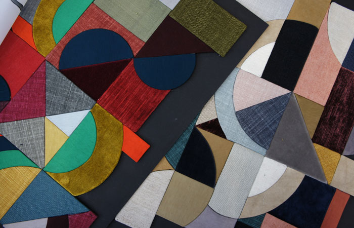 For this design we we’re celebrating a hundred years of Art Deco with an art deco block print, we’ve been very faithful to the archive and then interpreted it as an embroidery.