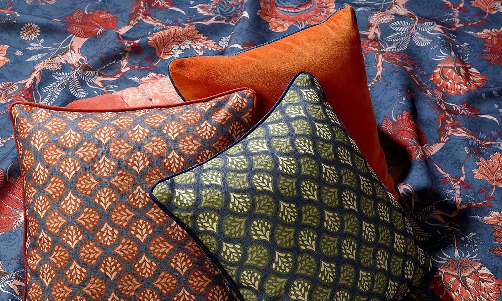 Fabric is available on the roll or as part of our full-service offer; including measure, design advice, curtain, bedding and cushion make-up and installation.