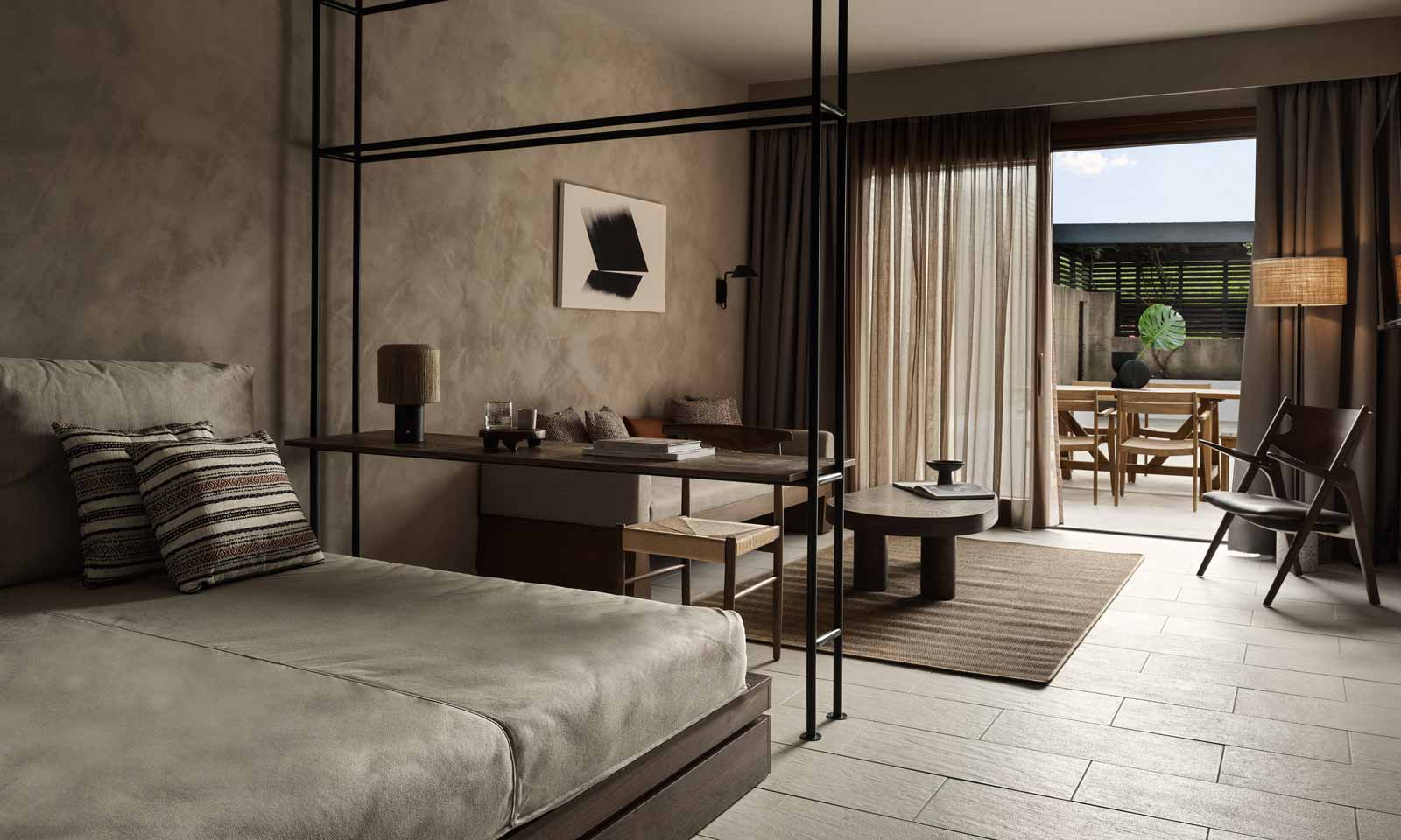 The 188 spacious rooms and suites have an inviting minimal ‘boho’ design, exuding refined elegance. Earthy tones and natural textures create a harmonious flow between the stunning surrounding nature with views of the Aegean Sea, and the relaxed indoor atmosphere.