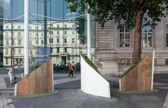 But dotted along the route are 3 special new commissions that explore the significance of biodiversity and sustainability whilst “epitomising the area’s role in promoting debate and driving progress to address society’s most pressing challenges.” Each designer was selected as part of a competition organised by The London Festival of Architecture and Discover South Kensington, which involved a pairing with one of three cultural partner institutions – the V&A, Science Museum and Goethe-Institut.