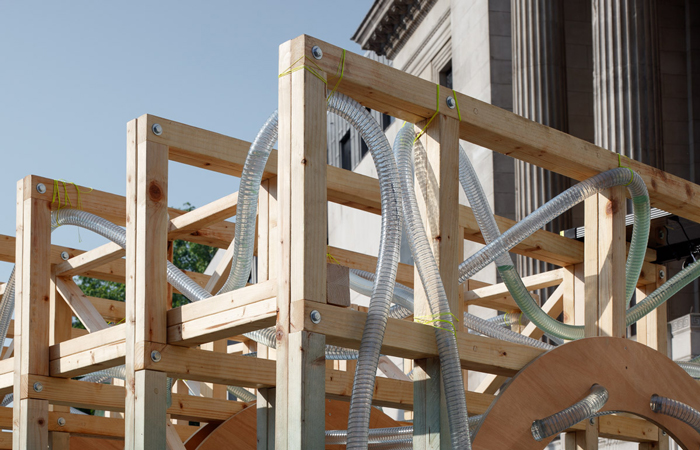 The Algae Meadow has also looked to bring in the wider community having been constructed from locally and responsibly sourced materials by a team of volunteers including women from the Black Females in Architecture network. The final form, which has tubes that coil around a partially dyed timber frame that house the soilless planters wouldn’t look out of place on the set of the film The Martian; which is fitting for a piece of work, and indeed entire event, that has set its sights on increasing awareness and improving the availability of natural habitats for wildlife and us as a species. The 2 are entirely intertwined after all.