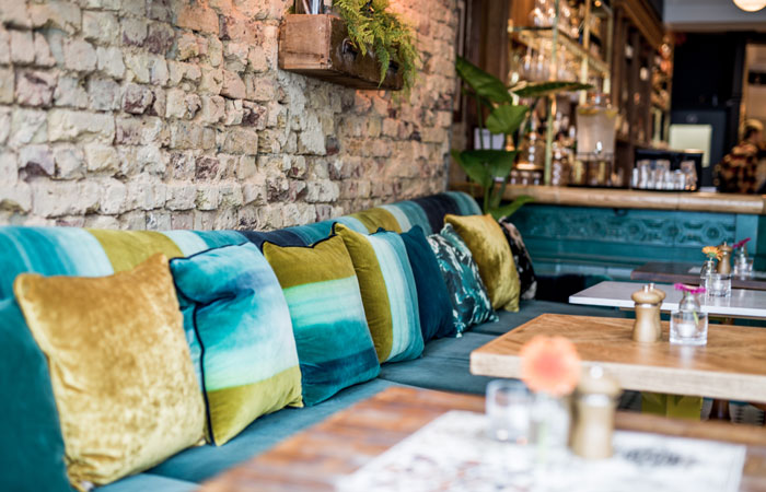 “Harlequin’s Amazilia Velvet from Style Library Contract was the perfect fit for our rich and vibrant verdant colour scheme, paired with Zoffany’s Curzon on bistro chairs and scatter cushions. We needed fabrics that were durable and sumptuous, the multi tones of colour enhance the overall effect we wanted to create”, explain the team at Fusion by Design.